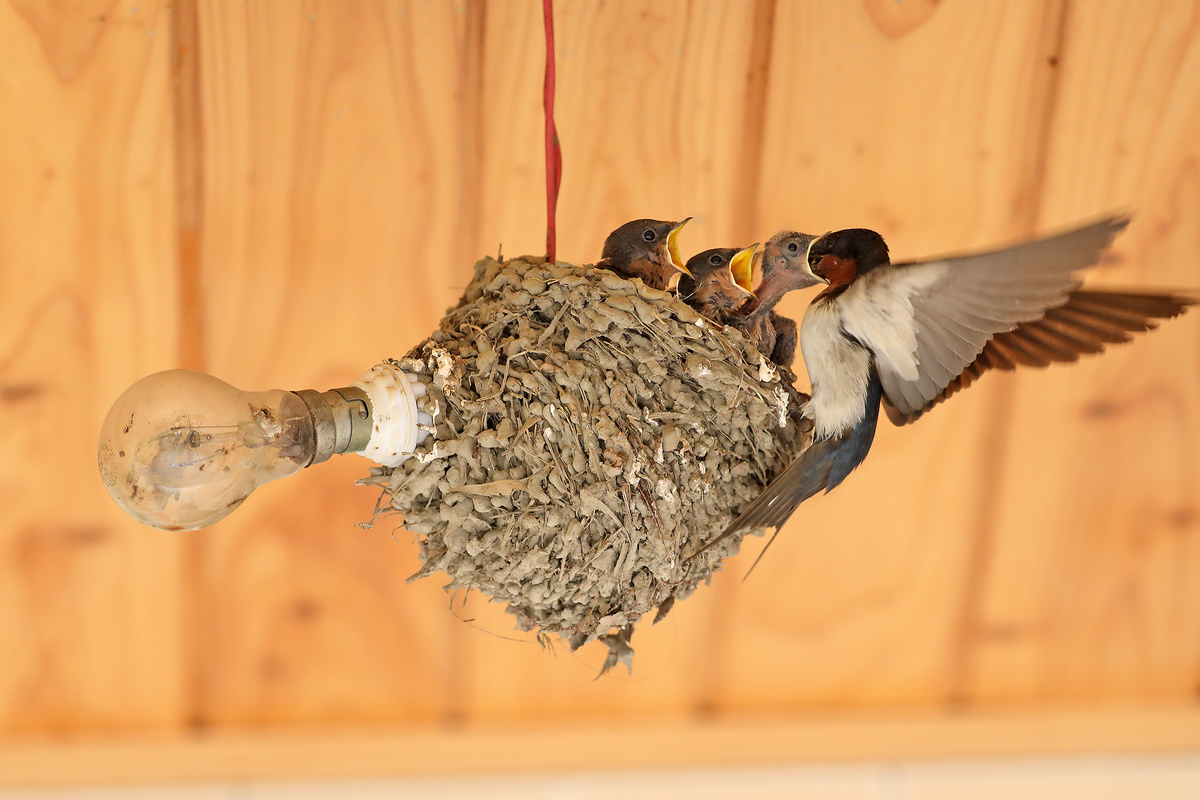 值得注意的是,家燕的喉咙是红色,包括它的额头、靠近嘴的位置都是赤红色的。