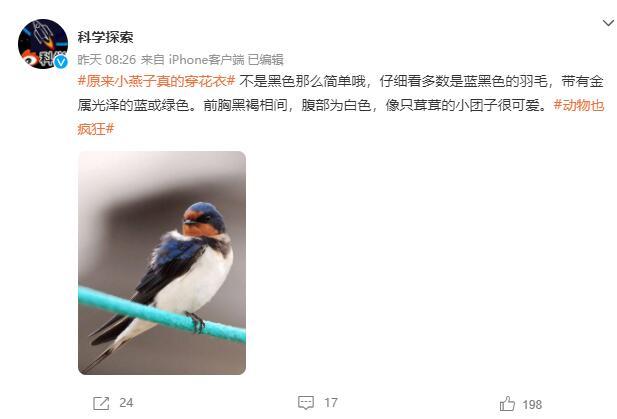 其实呢,燕是雀形目燕科74种鸟类的统称,不同的燕子羽毛颜色是不一样的。