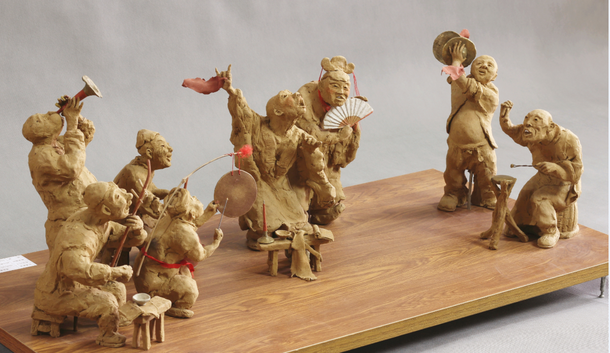 李长青《旧蜀村戏》78x35x25cm 泥塑