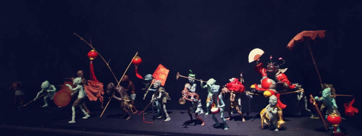 《钟馗出巡》全长176cm单件高约18cm 泥彩塑