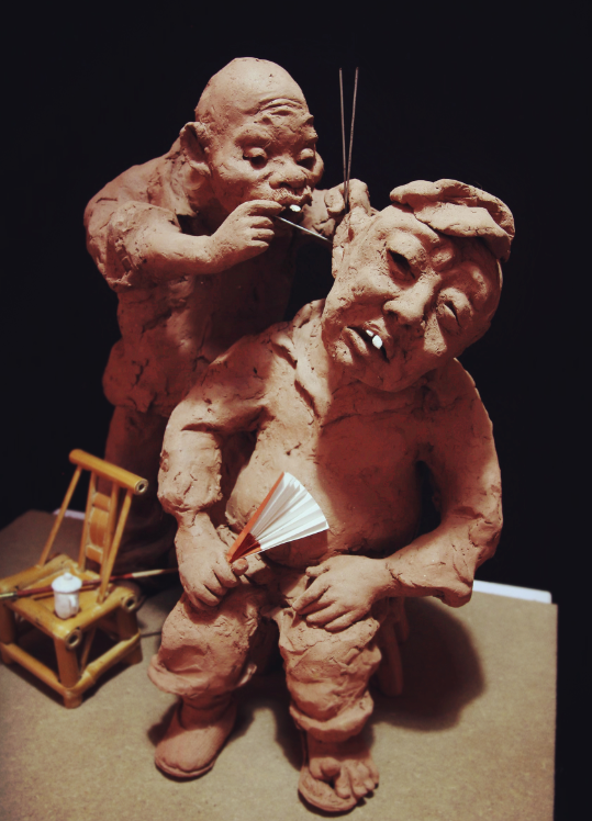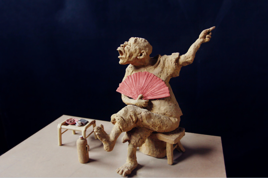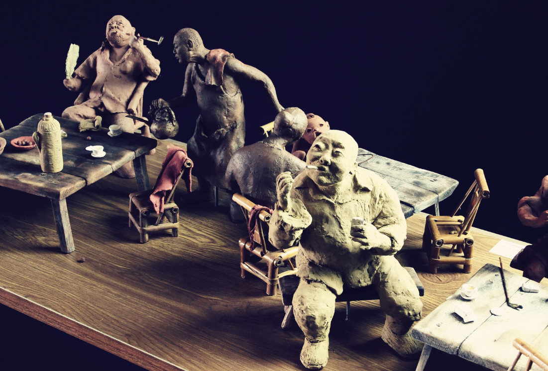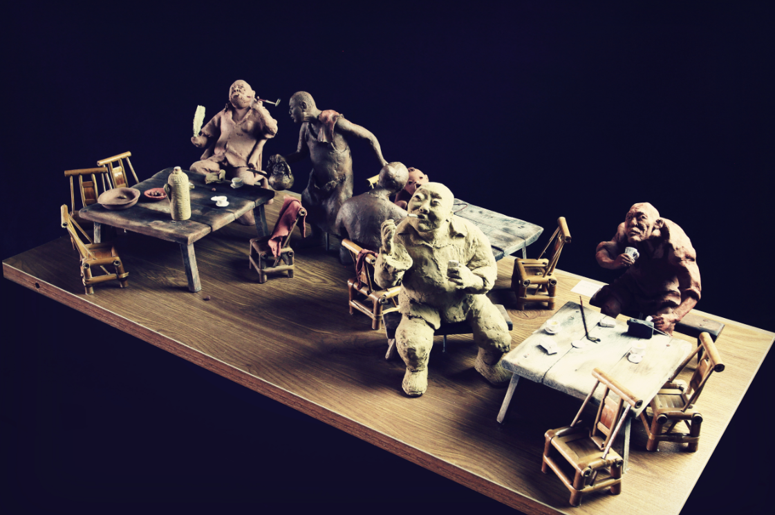 李长青《茶馆》局部78x32x20cm 泥塑