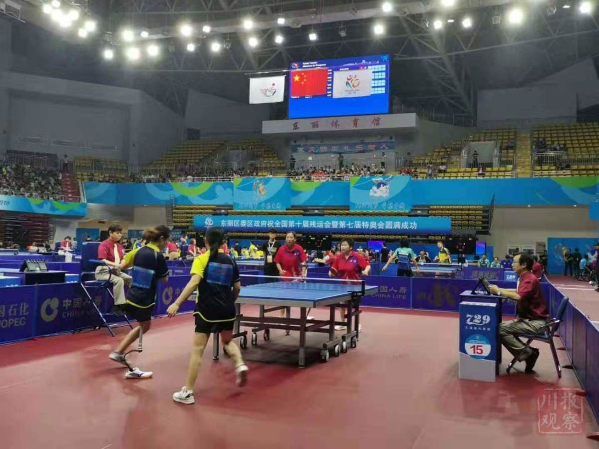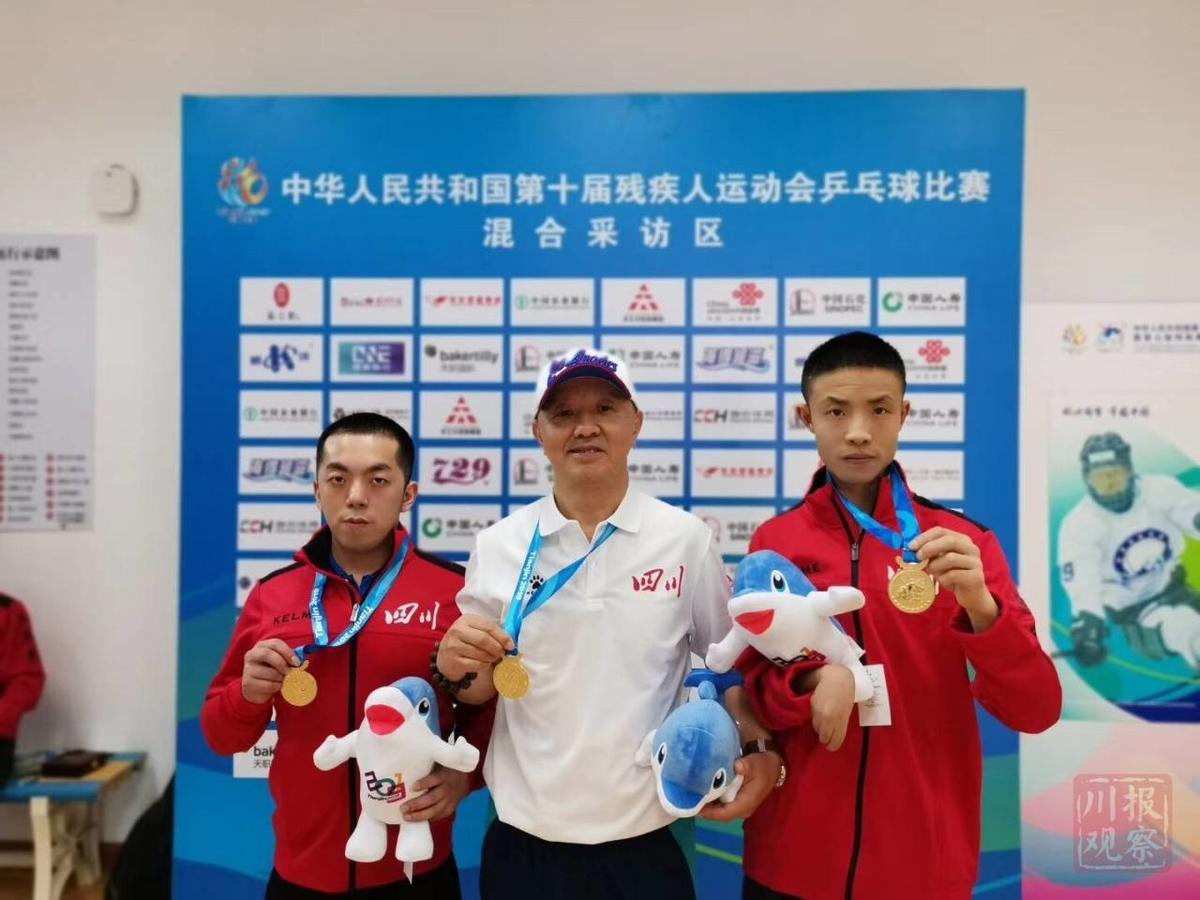 值得一提的是,四川乒乓球队在此次残运会上成绩斐然。一共取得了7金2银4铜的好成绩。其中,报名竟技肢残组的7名选手,每人都有金牌。“太不容易了,这帮孩子很多都是在我手中从完全不会打乒乓球到如今成长为全国冠军、亚洲冠军甚至世界冠军,8年时间我一直看着他们辛苦付出,真的希望能把他们送进残奥会的赛场,圆他们的一个梦。”站在赛场边,四川残疾人乒乓球队主教练周再行告诉记者,“他们就像我的孩子,希望看着他们长大,护送他们去更广阔的天地遨游。”