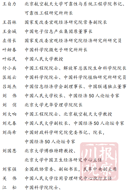 省委、省政府第三届决策咨询委员会特聘委员名单↓↓↓