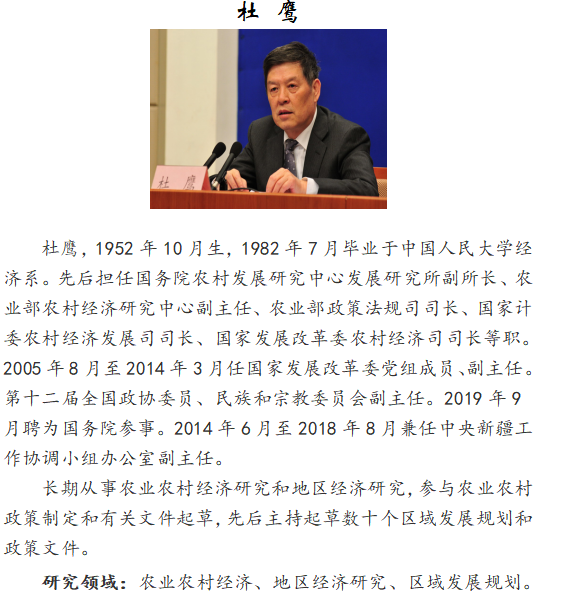44名同志中,省部级领导10人,中国经济50人论坛专家6人,“两院”院士8人,其他高端智库专家学者20人,涉及政治、经济、文化、社会、生态等领域,涵盖了宏观经济、产业经济、区域经济、数字经济、科技创新、对外开放、基础设施、金融财税、文化旅游、“三农”工作、乡村振兴等方面。