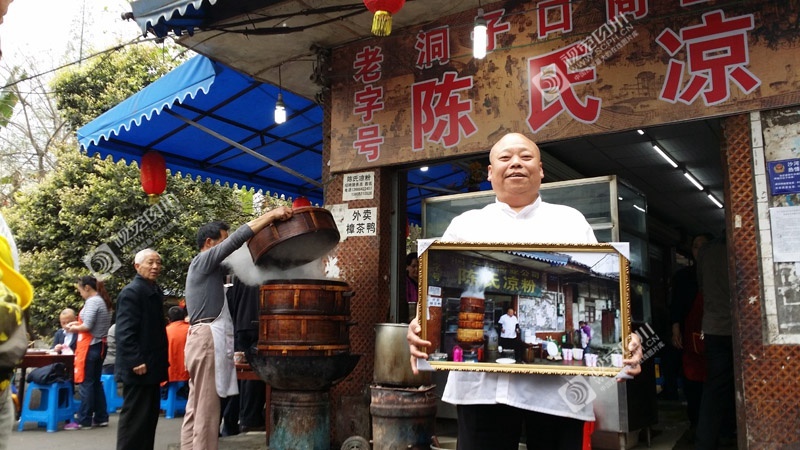 成都西北郊洞子口有家传承百年的“陈氏凉粉”店,以凉粉为名实展烹饪功夫,川菜中具有代表性、标志性的菜肴来店都能品尝。从原料准备、刀功成形、汤汁勾兑、火工烹调到菜肴的色、香、味、口感风味道道过硬,硬是不摆了。每餐食客络绎不绝,陈老板笑欢了。