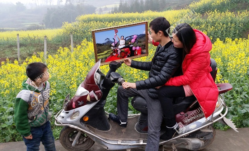 邛崃市夹关镇雕虎村十组郑小庄娶媳妇儿了,是用他那台新买的“东方红”拖拉机,把新娘接回来的。一路好扯人眼球哦,妻子陈梅也不拘形式,新潮大气婚事新办接地气。这是小郑娶亲当天村上人议论的话题。