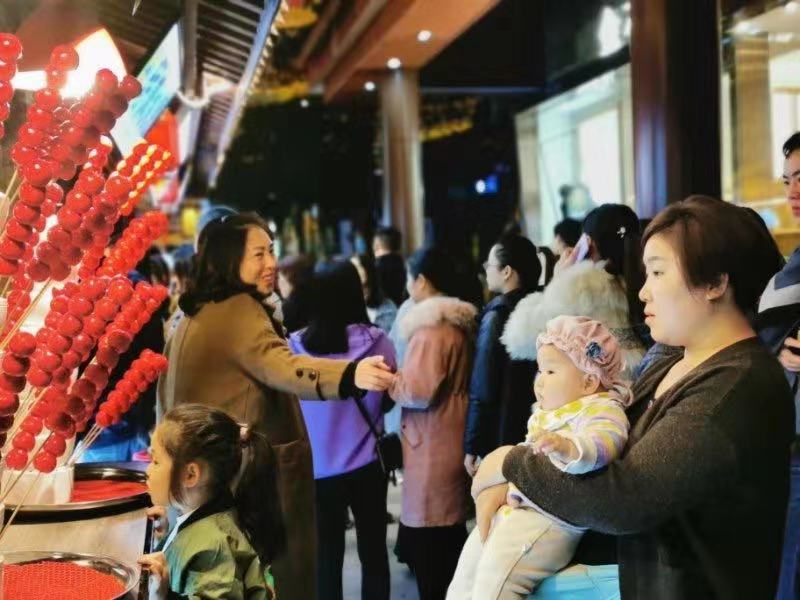 据悉,美宇1227夜市位于顺庆区重点打造的南门坝特色商业仿古街区内,11月9日正式开市,全长300余米,建筑形态以仿古建筑集群,主要以特色小吃、名优特产、花市、地方文化展示业态为主,夜市一期结合了当地三十余家知名餐饮商户,夜市内有统一的区域划分,每个店铺都有自己的“专位”,还设有休息设施20多处供逛累的市民休息。记者在现场看到,独具特色的文化表演和美食,让很多的行人停下了脚步,边吃小吃边欣赏精彩的节目,不少的店铺面前都排起了长队。