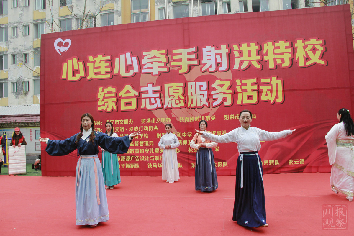 12月15日下午,射洪市特殊教育学校操场内人气鼎沸。由遂宁市文明办、射洪市文明办、共青团射洪市委、射洪市民政局联合指导,由铁马文明·爱心行动协会主办,拾遗汉服社参与承办的“2019暖冬行,心连心牵手射洪特校”铁马综合志愿服务活动在射洪市特殊教育学校操场上举行。