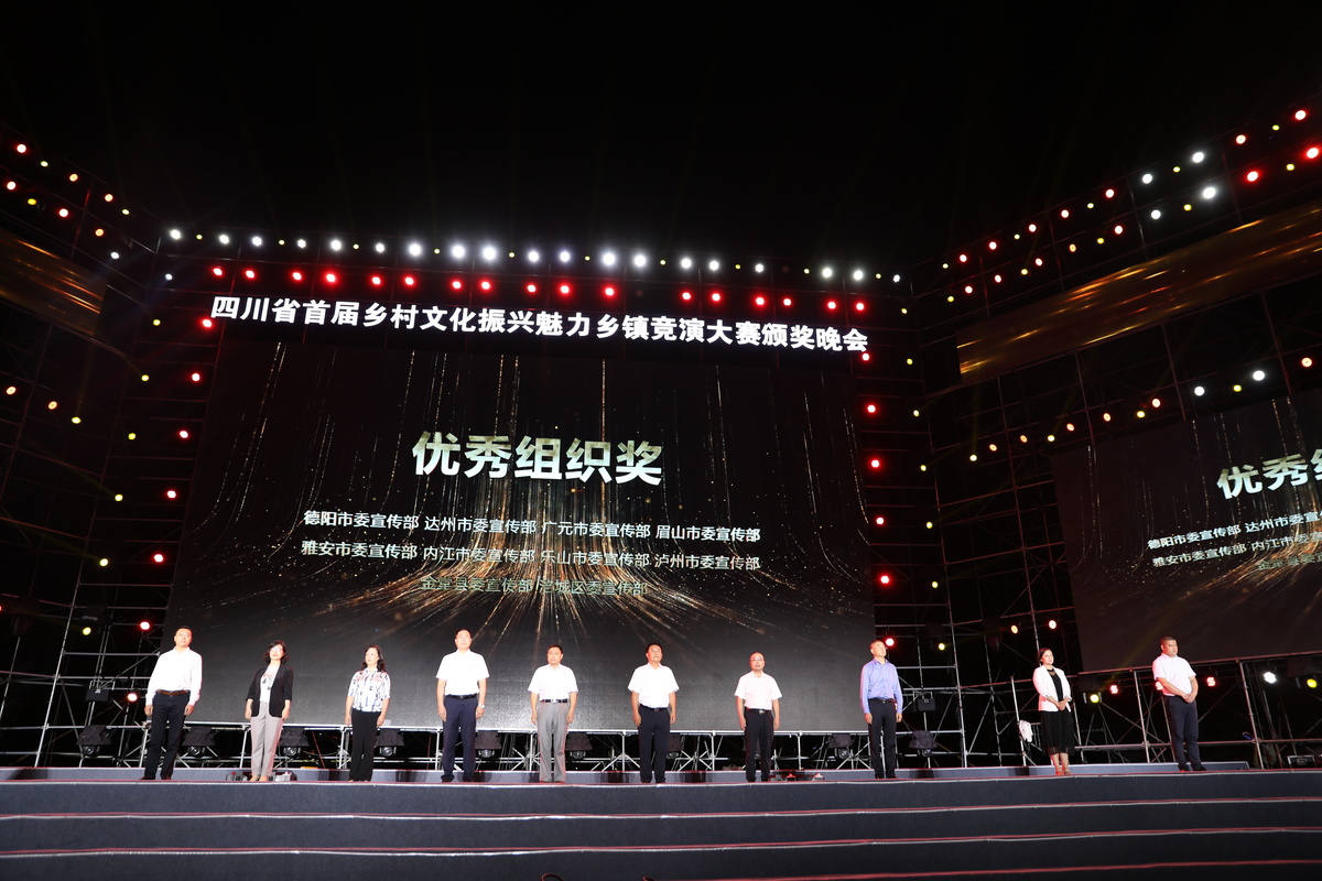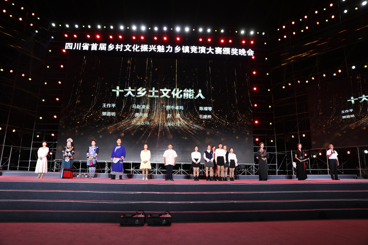 9月29日晚,四川省首届乡村文化振兴魅力乡镇竞演大赛颁奖晚会在德阳盛大举行。作为本次晚会的压轴重磅,备受瞩目的十大优秀组织奖、十大魅力乡镇、十大乡土文化能人等奖项现场一一揭晓。