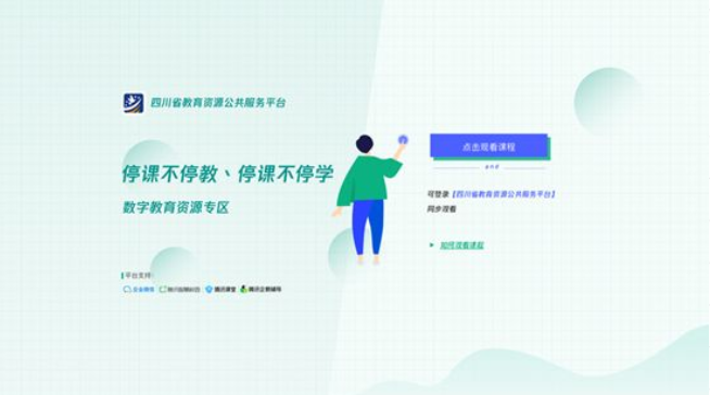 通过电脑、平板等终端登录互联网,进入“停课不停教、停课不停学”腾讯教育空中课堂专区(网址:https://sc.campus.qq.com/),选择对应的学段、年级,根据学案建议表,选择相应学科进行在线学习。