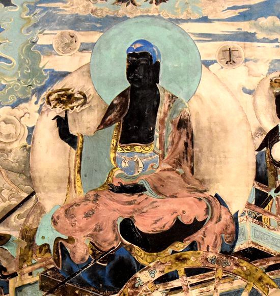 炽盛光佛是莫高窟第61窟,壁画绘制在元代。大家看到的这一幅是由李月伯和霍秀峰临摹的。