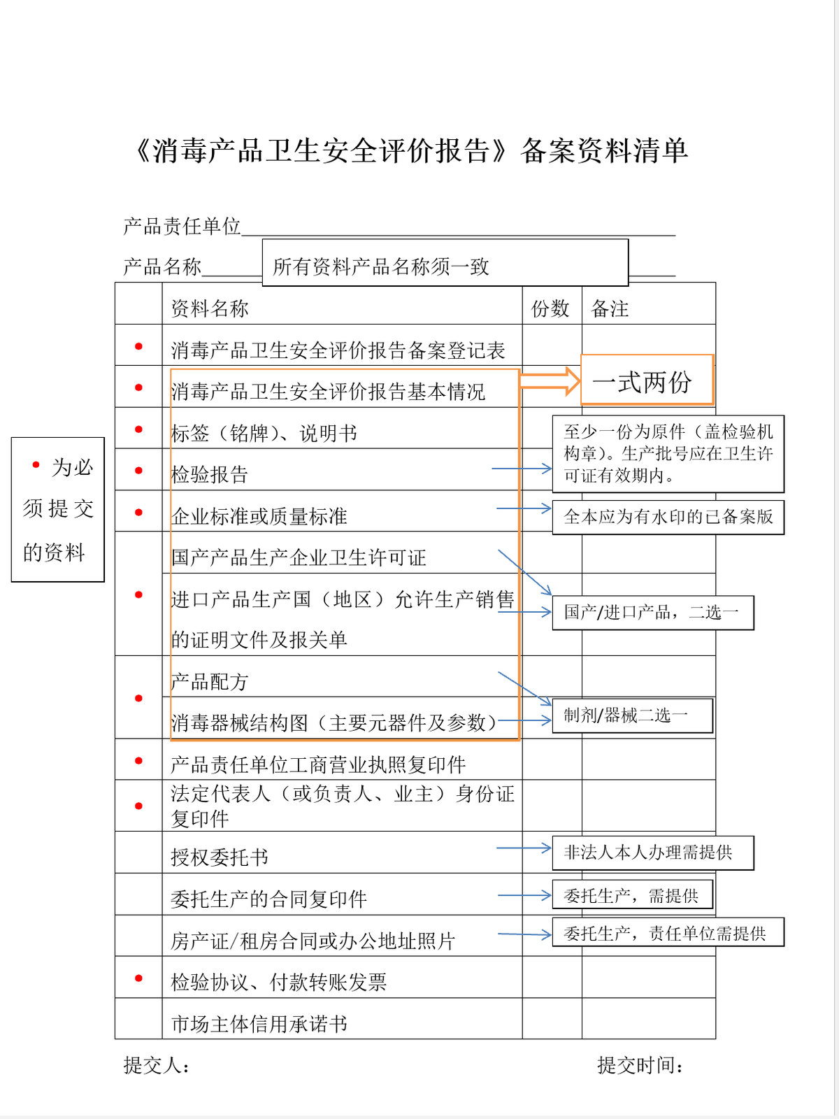(一)消毒产品卫生安全评价报告备案登记表;