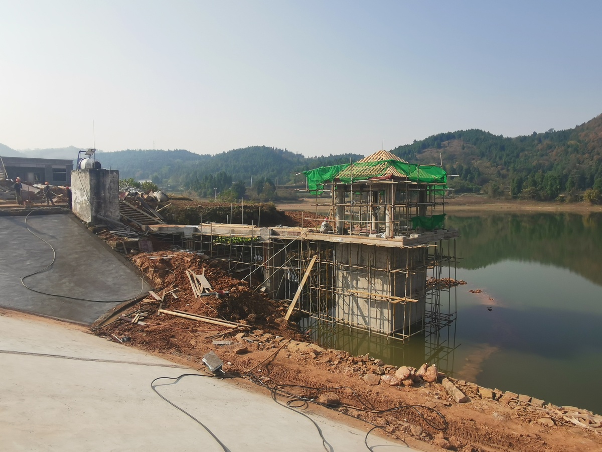 位于德阳市中江县的一处小型水库正在开展除险加固施工