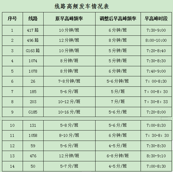 线路高频发车情况表