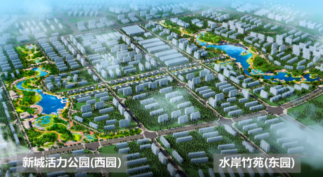 主要打造包括竹文化主题公园、新城活力园、商业水街在内的南部新城山水城市湿地公园。