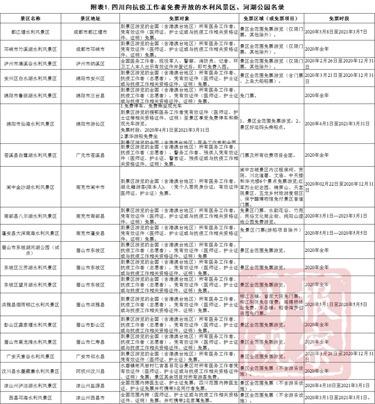 附:四川向抗疫工作者免费开放水利风景区、河湖公园名单