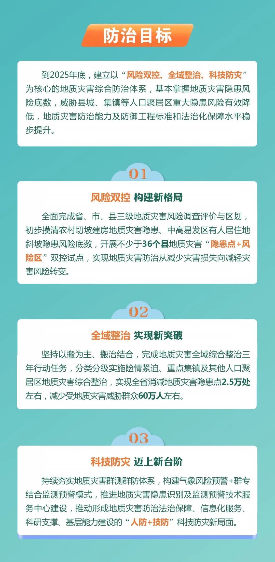 “路线图”已明确,关键还在落实。省自然资源厅相关负责人介绍,《规划》给出了“一揽子”保障举措,将建立政府组织领导、部门齐抓共管、专业技术支撑、社会公众参与的地质灾害全链条管理体系,确保各项目标如期实现。
