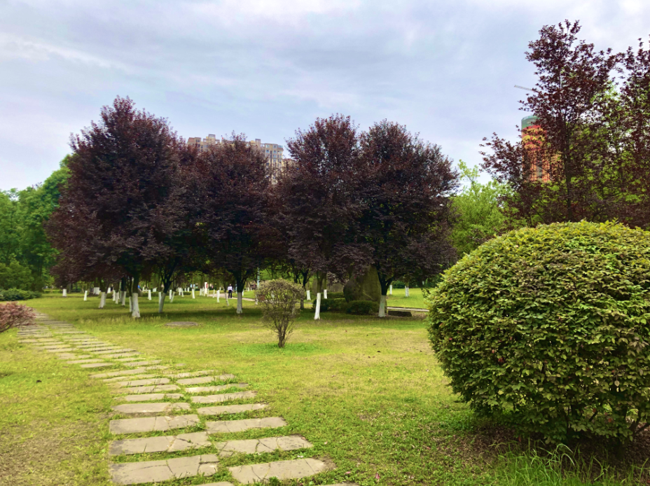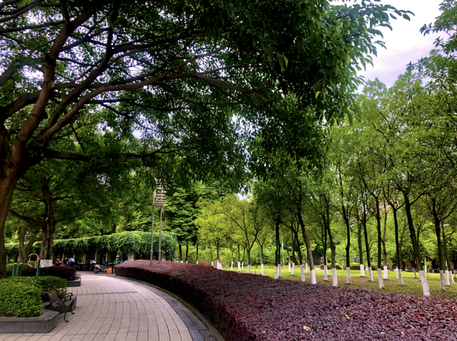 公园外围的步道修建得清爽整洁,草坪的小路铺得静谧清幽。