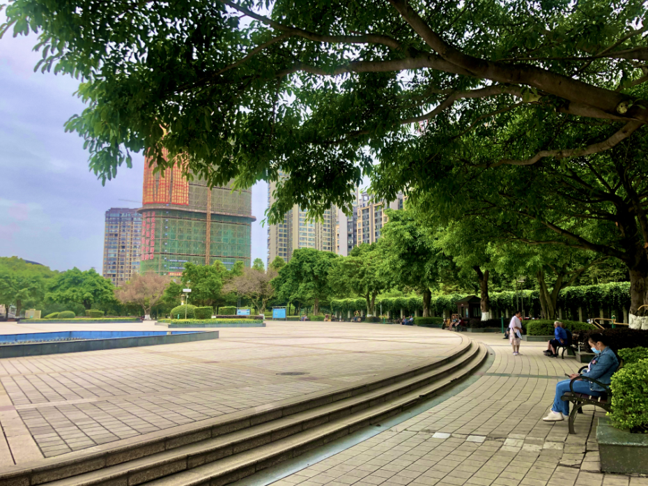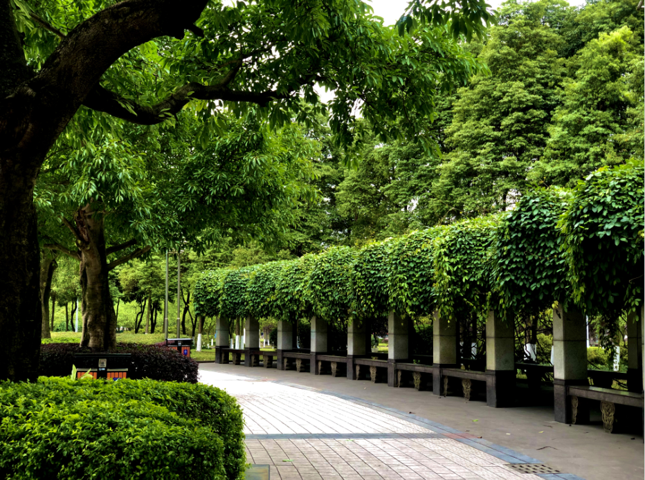 漫步在苏轼公园,如同走进一幅幅徐徐展开的绿色画卷,枝繁叶茂的榕树,深红鲜艳的石楠树、嫩绿茂密的藤蔓,花开正艳的三角梅扮靓了整个公园。