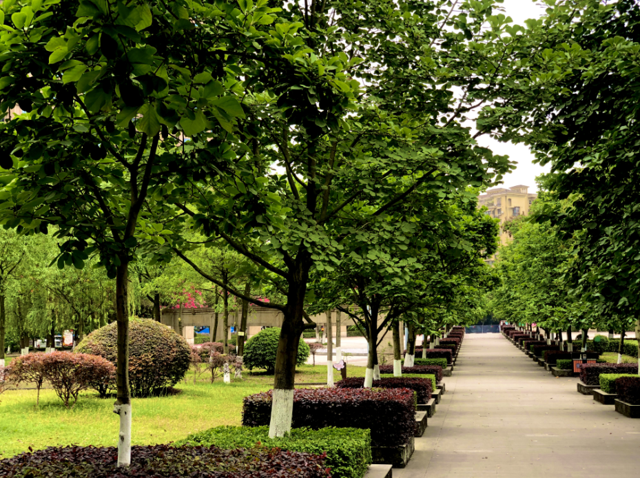 人行道和绿化带中设计成“诗、书、印”的样式,浓郁的东坡文化氛围就这样扑面而来。
