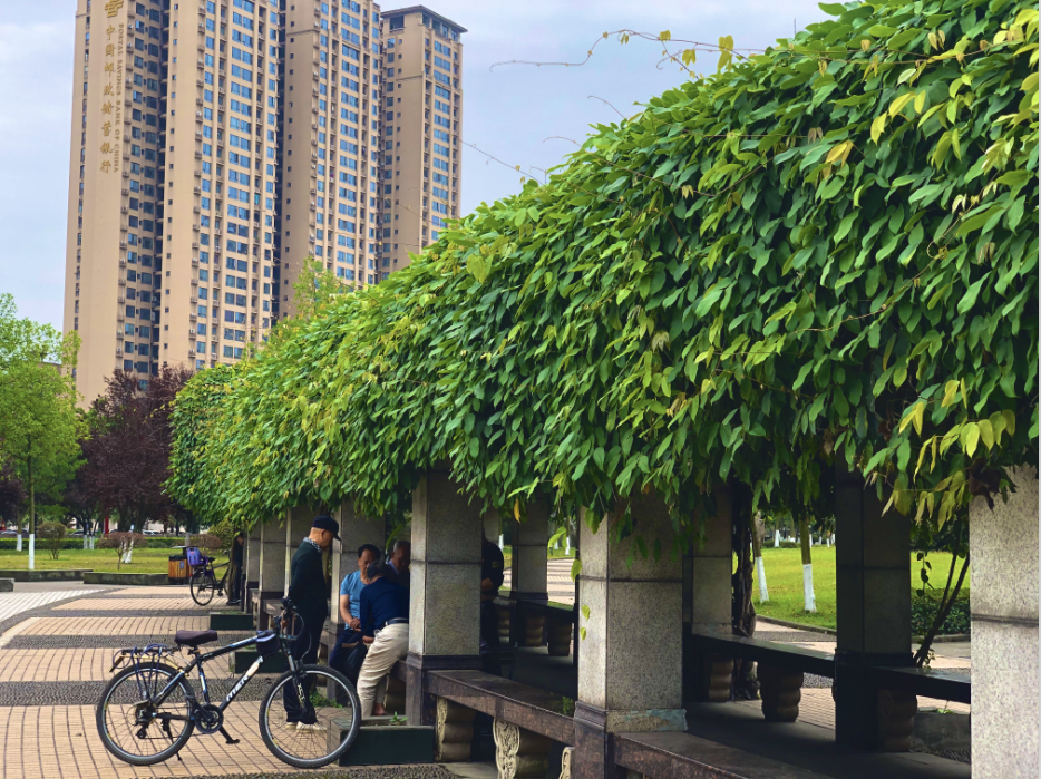 公园广场两侧的廊道以精巧雅致的生态园林和文化长廊相结合的形式,既平添了盎然绿意,又体现出诗情画意。