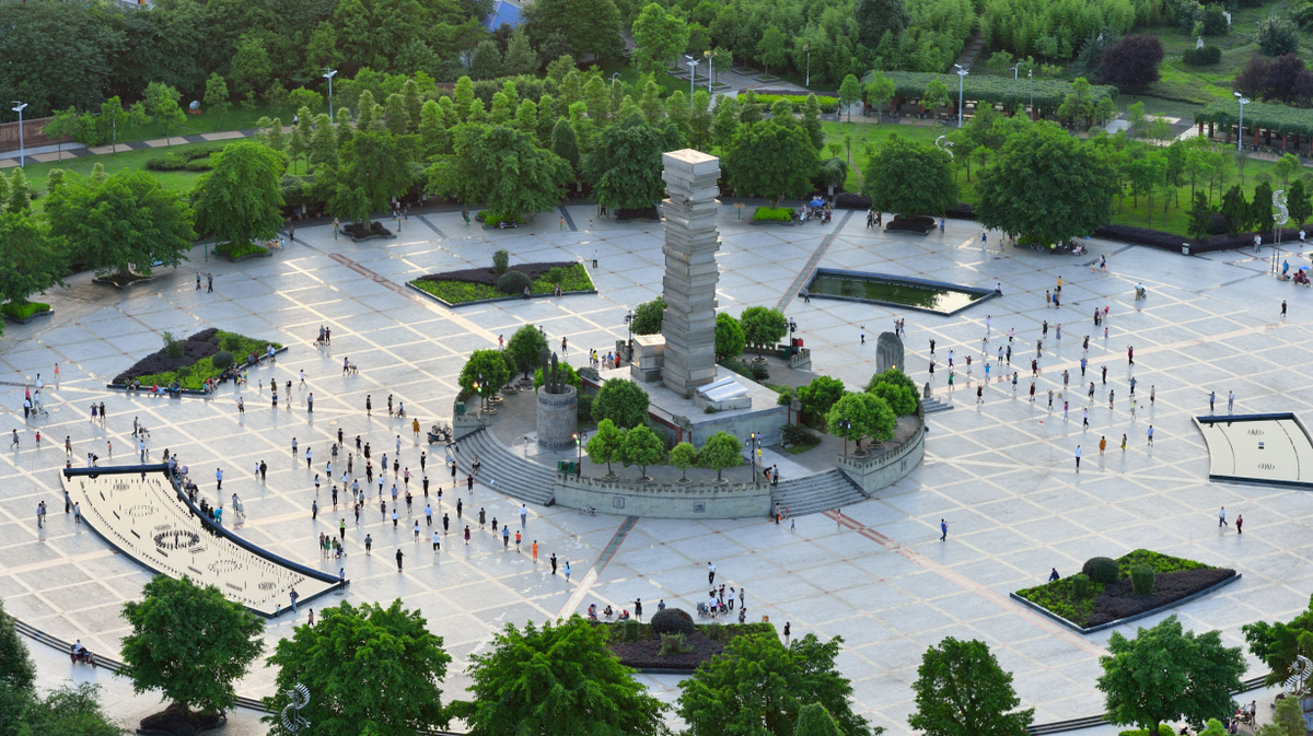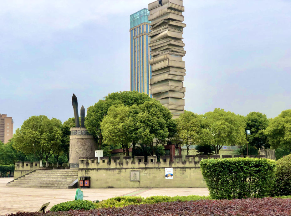 广场中心矗立着30多米高的“千载诗书”主题雕塑。走到雕塑前面,一个巨大的笔筒和毛笔,及一本翻开的书,散发出浓浓的书卷味。雕塑基座的围墙上,刻着眉山的各处人文景观,引人遐想。