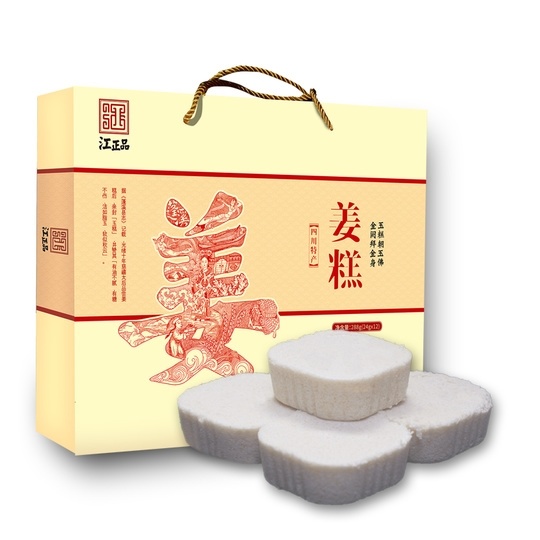传统的蓬溪姜糕,以糯米、蜜糖、麻油、姜汁为原料,食用也颇为讲究,有“一糕多吃,味道各异”之说。可选择开袋即食,但吃时千万不要张嘴,否则会喷出一地残渣;可用香油炸至金黄,外酥里嫩;可干蒸食用,姜糕入口会变得尤为软糯;也可以用开水搅拌食用,益于消化。