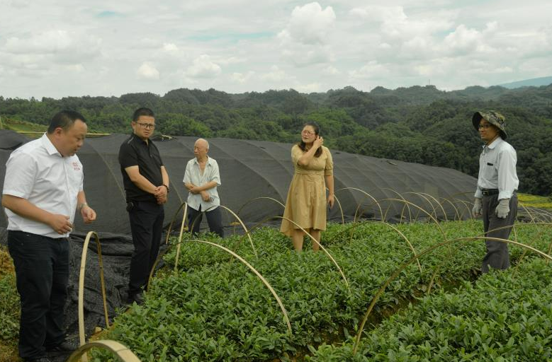 洪雅县委统战部、洪雅县委党校、民建眉山市委、洪雅县农业农村局、洪雅县新联会等单位的相关负责人、专家学者一行,还实地考察了槽渔滩镇抱团发展产业扶贫奶白茶基地和有机茶示范基地。