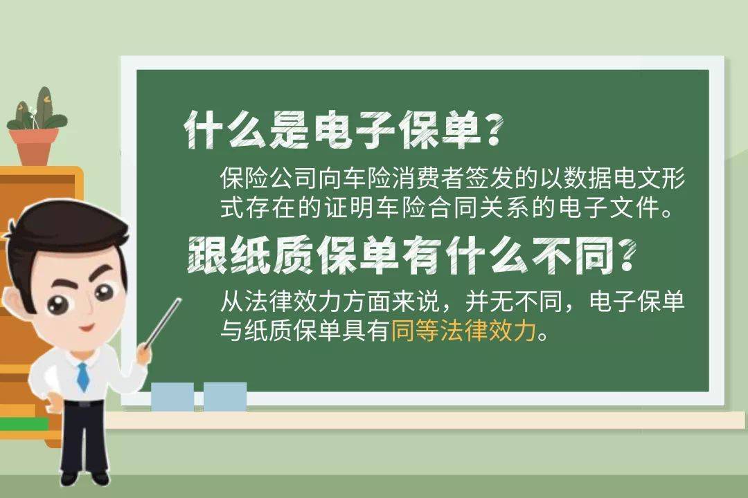 据介绍,车险电子保单是由保险公司向车险消费者签发的以数据电文形式存在的证明车险合同关系的电子文件,涉及的单证包括交强险和商业险电子保单(批单)以及交强险电子标志,目前设定为 PDF格式文件。“车险电子保单是证明机动车保险合同关系的电子证明文件,是纸质单证的替代品,具有传统纸质保单同样的内容和同等的法律效力,并具有安全、便捷、高效、环保等特点。”