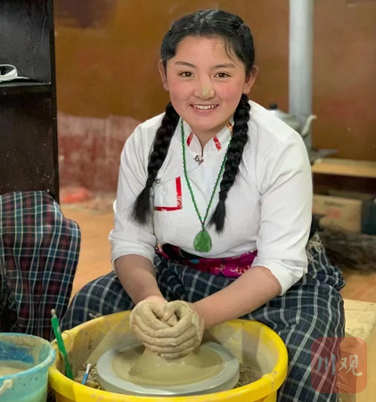 “刚开始到外面学习,我们沟通上有很大的问题,我也听不懂汉语,所以学起来很困难,但在两年后,沟通就基本没问题了。”卓觉玛用寥寥几句带过的求学生涯中,除了沟通,还包含了生活环境、文化差异、远离亲友等多方面因素带来的不便,但坚韧的卓觉玛清楚的知道这是她改变未来的最好捷径,于是从学制陶到学习汉语、历史、政治她一样不落。在短短2年的时间,把自己培养成了一个多面手,拥有了每月固定5000余元的收入,