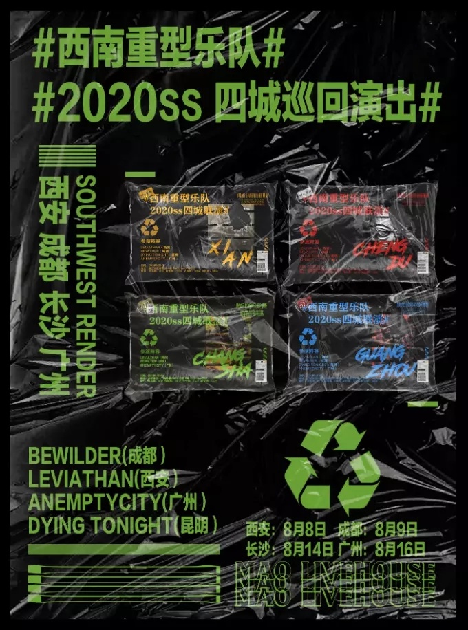 西安死核班霸Leviathan利维坦,成都后核Bewilder,广州新金属核An Empty City空城乐队,昆明旋律后硬核Dying Tonight消逝之夜,四支西南部极具代表性的重型乐队,联手呈上一部核类音乐大赏析,尘封半年,各位乐迷还好吗,「重声」开盘,核解困顿。