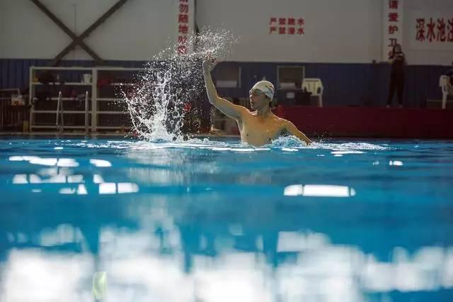 为了保证倒立的时候身体不下沉,手臂必须不停地划水保持平衡,而手的位置如有毫厘之差,则会改变整个身体的位置,因此手臂的肌肉运动量特别大。曾经有几天,耿耀志累得整个肩膀完全抬不起来。