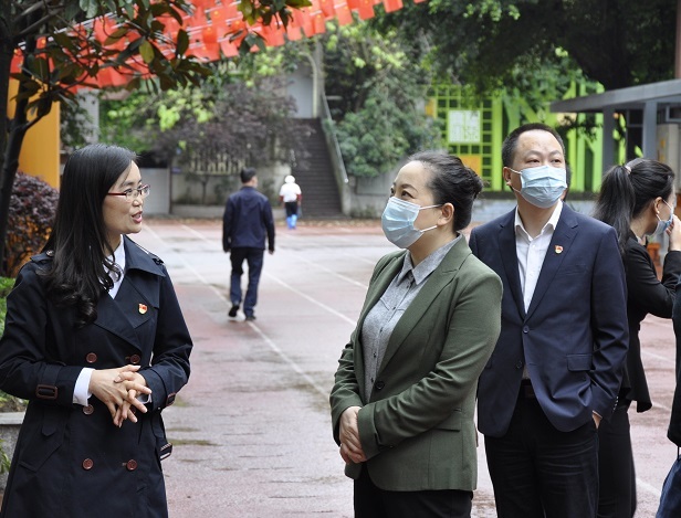 在自贡市第二十二中学校,万春霞一行听取学校党支部书记、校长牟高琴关于学校现状、办学业绩、发展思路、初中楼改造,疫情防控、交通安全、防溺水、心理健康、食品卫生安全等方面的汇报,万春霞对学校所做的各项工作给予肯定。