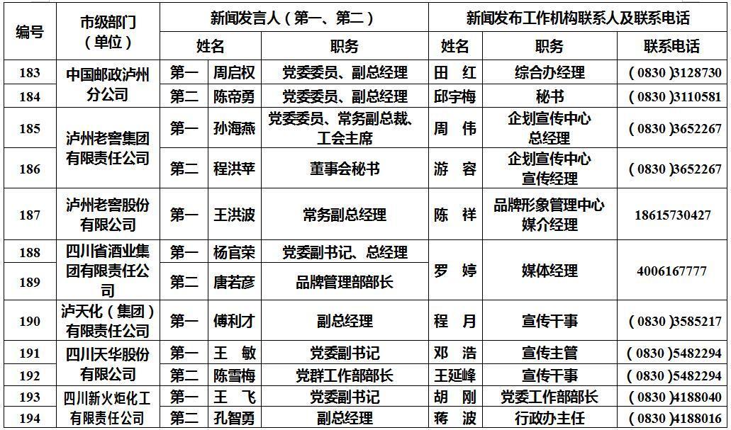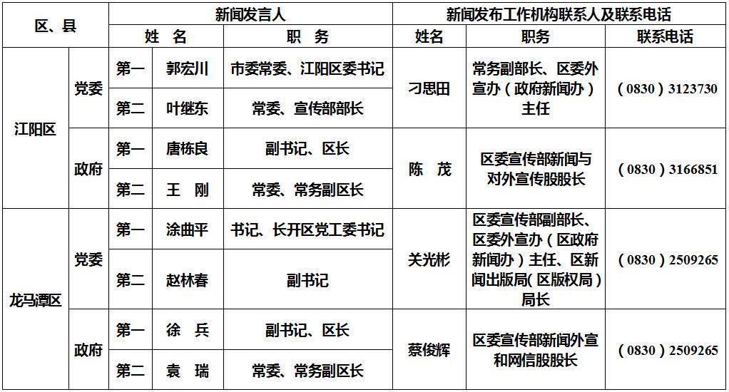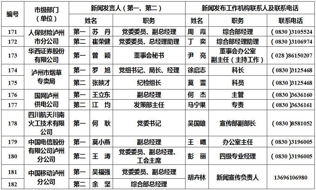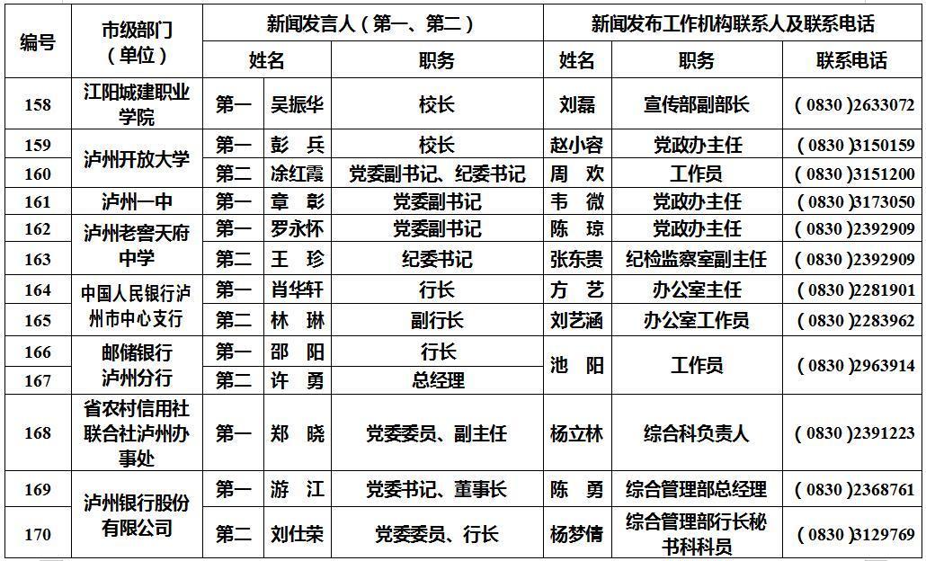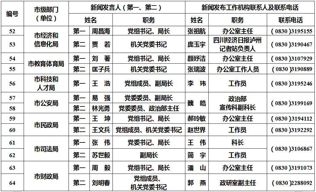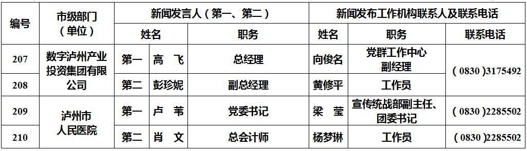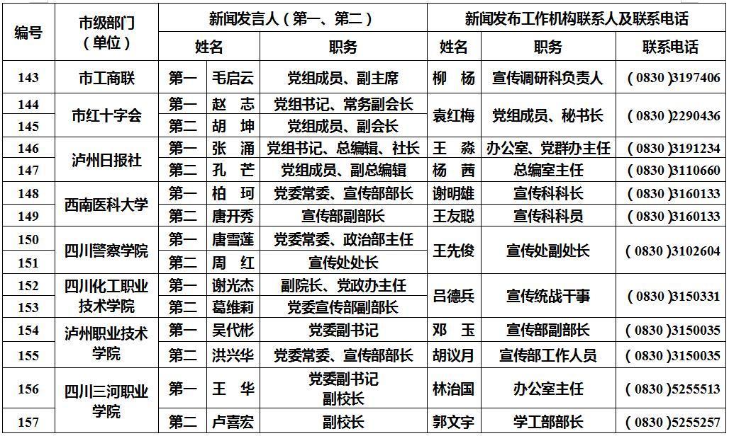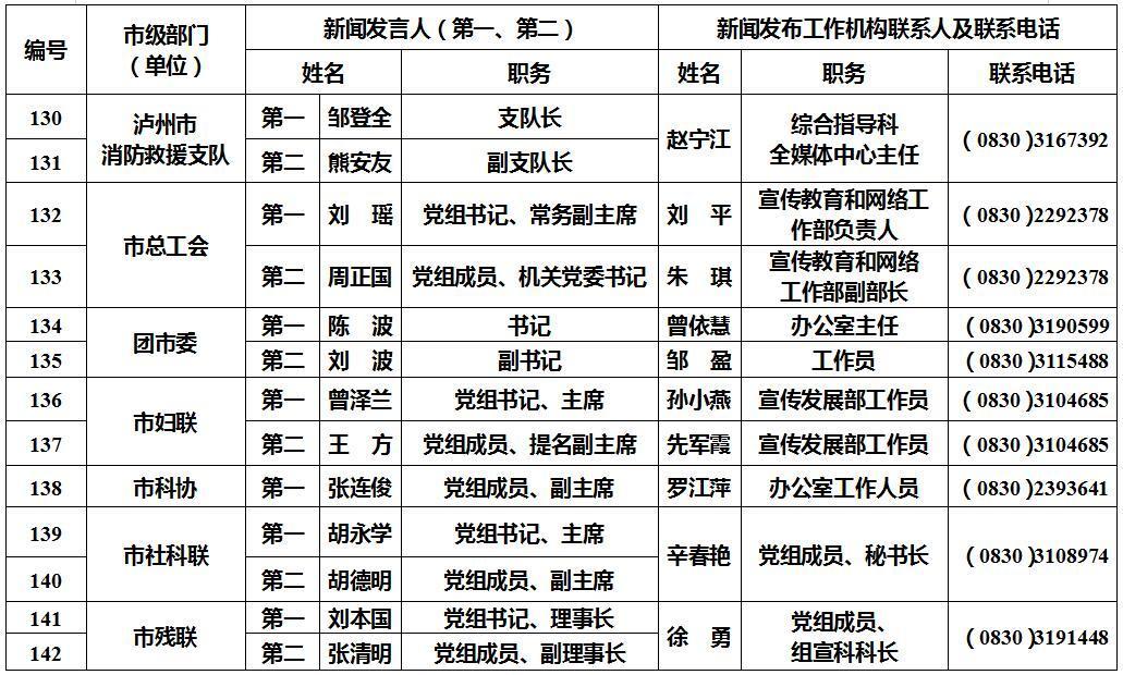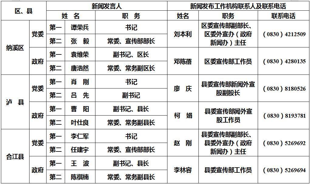 泸州市新闻发言人名单及工作机构电话