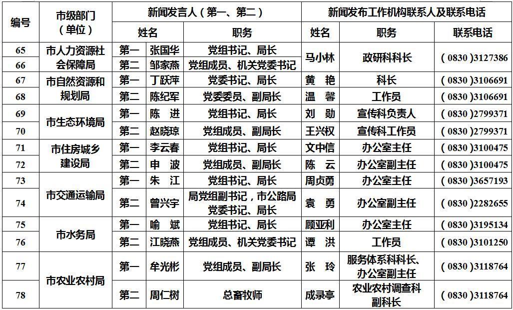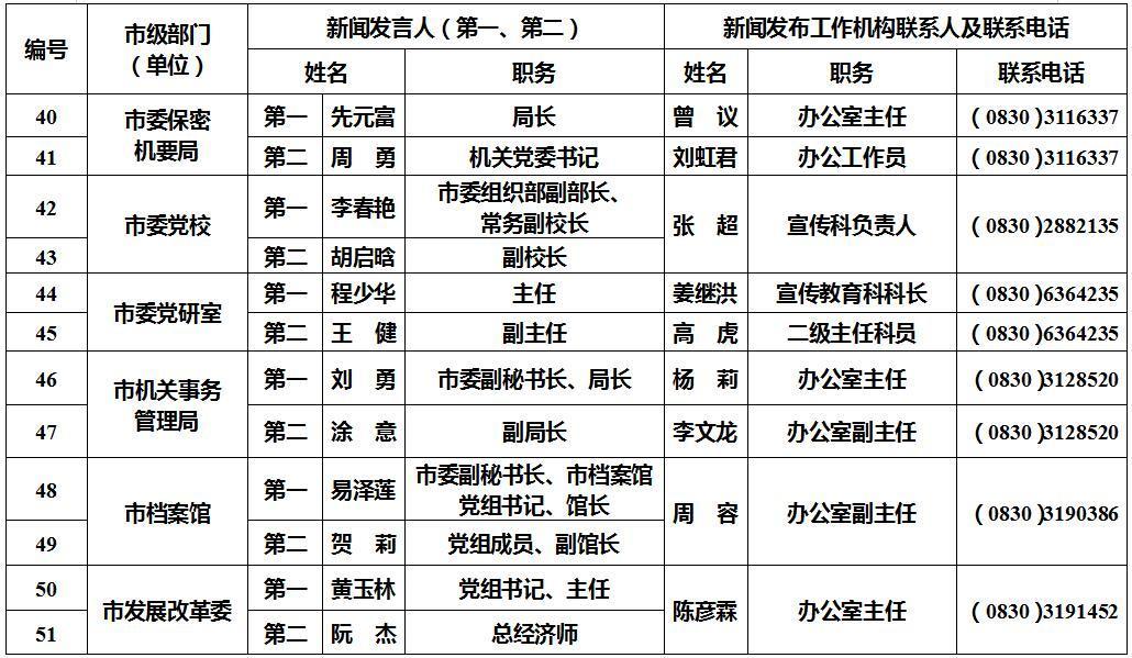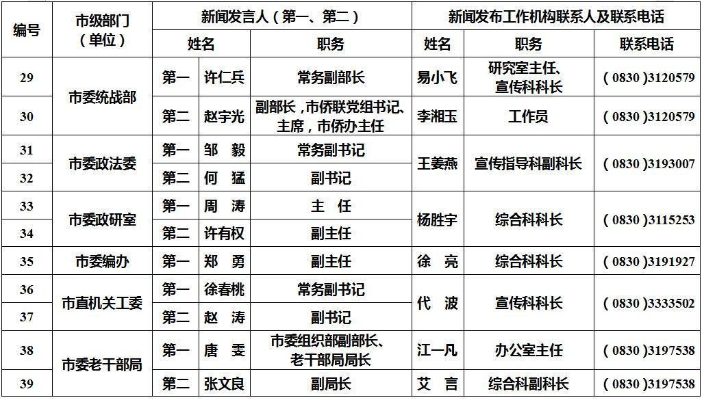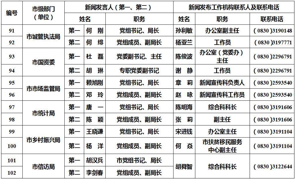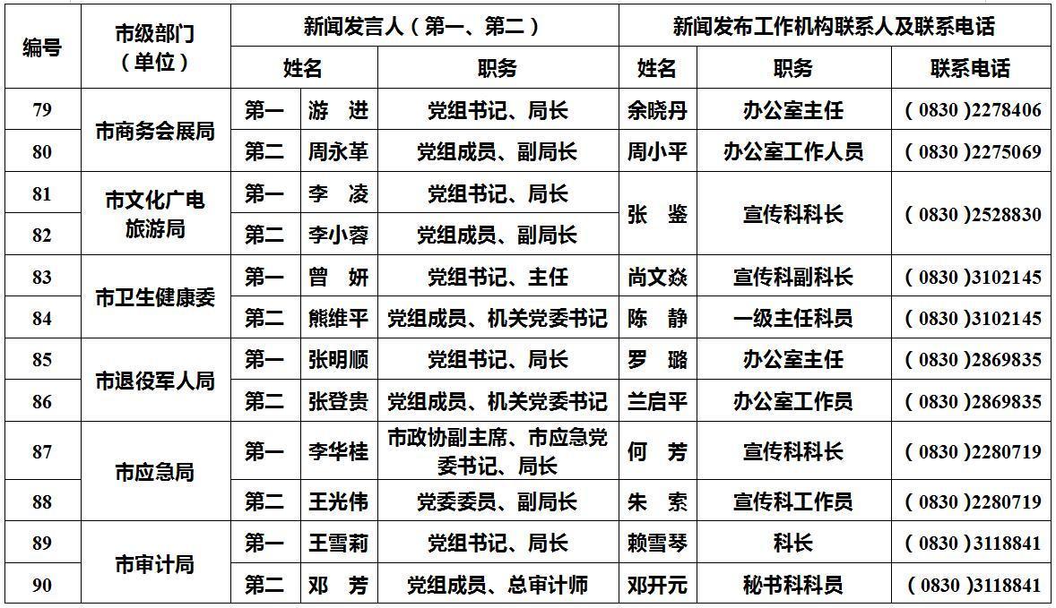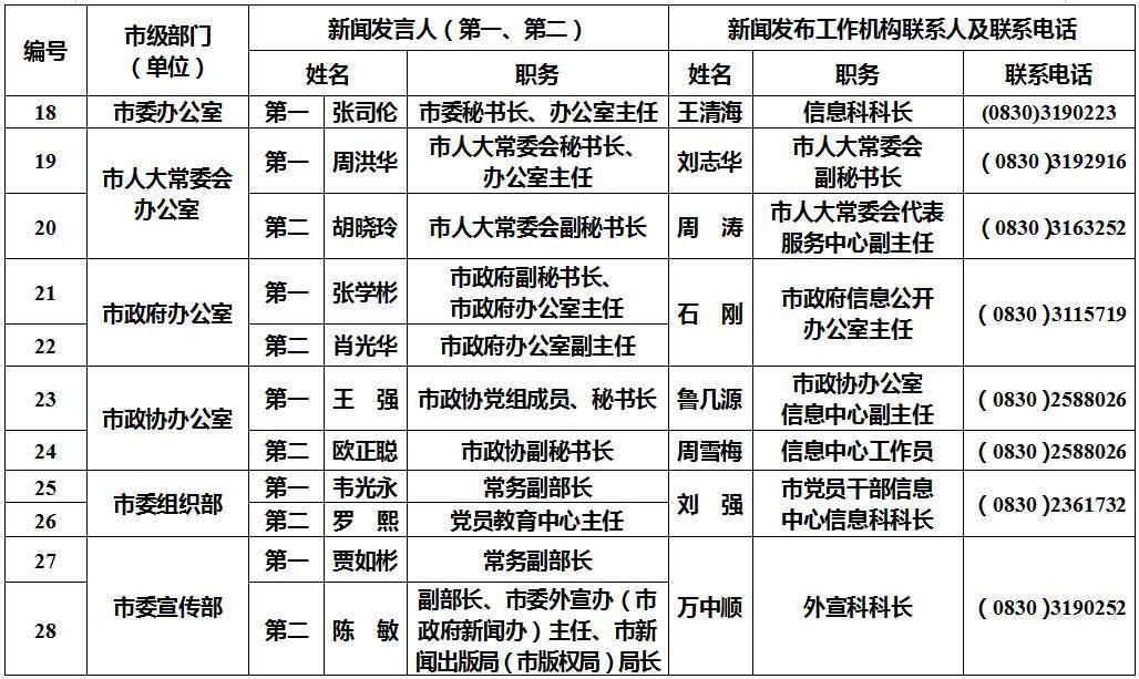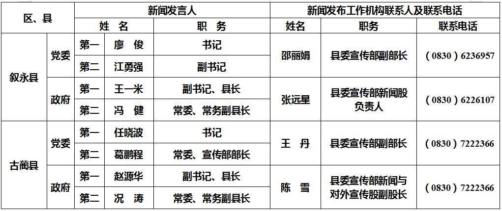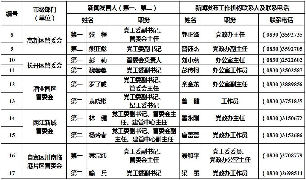 泸州市新闻发言人名单及工作机构电话