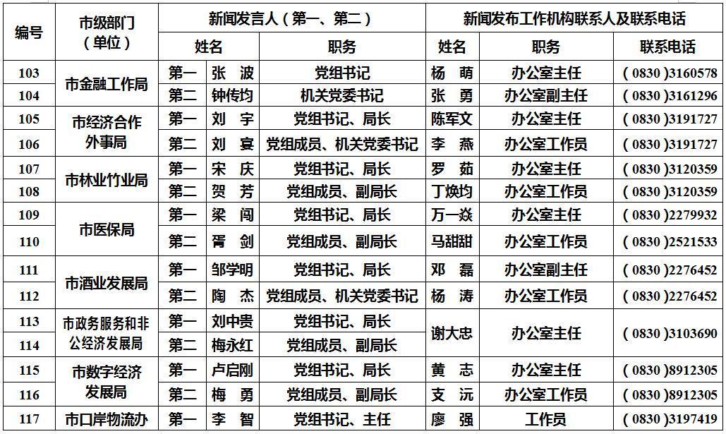 为加强和改进全市新闻发布工作,进一步做好新形势下权威信息发布,积极回应社会关切,努力提升全市新闻发布工作的质量和水平,泸州市人民政府新闻办公室向社会公布全市新闻发言人名单及工作机构电话。