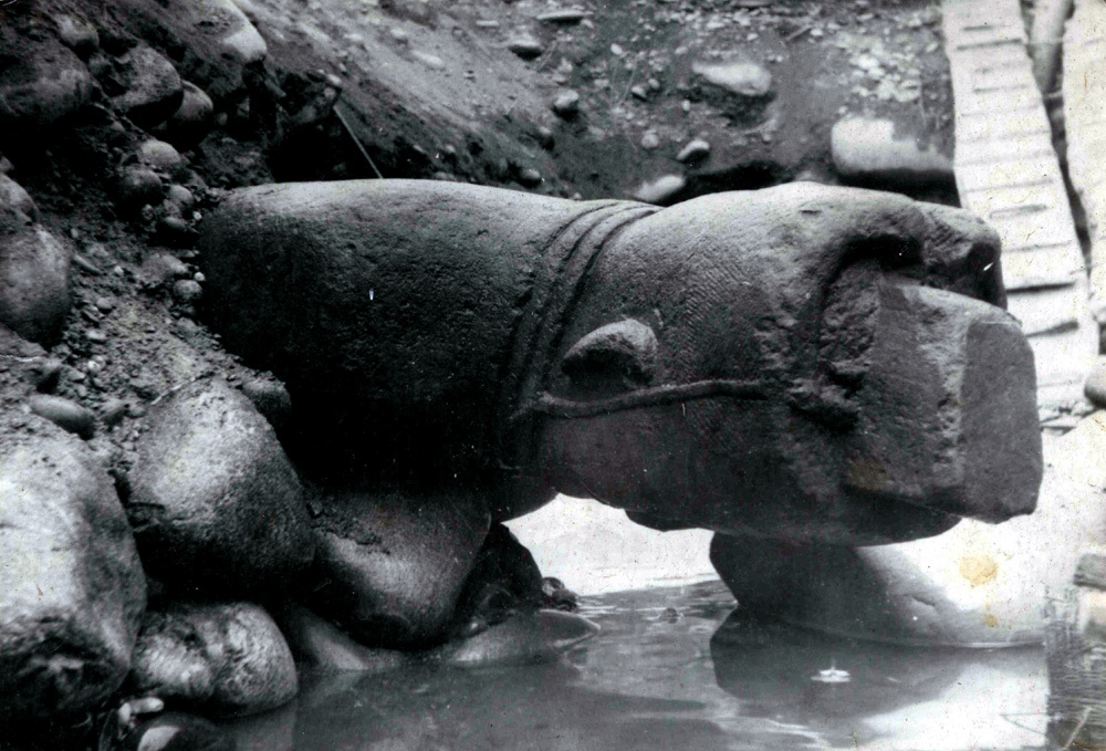 毛李蓉介绍,在李冰石像1974年出土以后,次年都江堰渠首扩建外江闸护滩时出土了一尊持锸堰工石像。这件无头石像重约两吨,可以明显看到石像双手持锸而立。“堰工像出土以后,再度轰动史学界,因为它可能是李冰石像铭文中提到的‘三神石人’之一,最关键的是,它证明后世百姓不仅纪念主持修建都江堰的蜀守李冰,就连堰工也同样受到百姓祭祀和拥戴。”