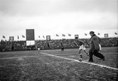 1953年2月25日,全国足球赛青年足球锦标赛开幕,时任上海市长的陈毅开球。