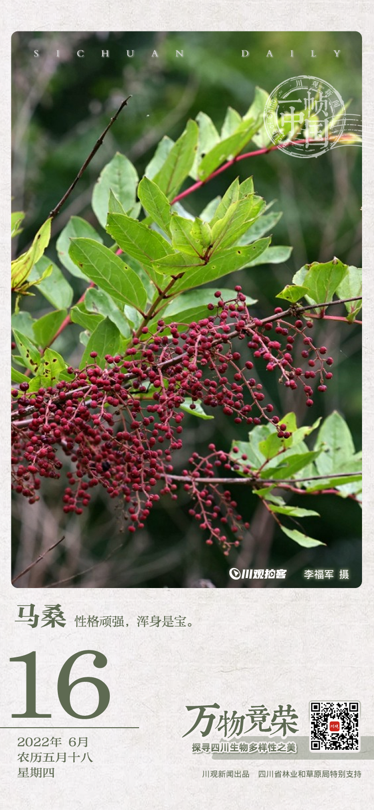 除了性格顽强,马桑浑身都是宝。中药典籍中有记载,马桑具有清热解毒、活血、祛风通络等功效。它的果、叶、树皮、根均可入药,比如叶子,可用于治疗烫伤、黄水疮、肿毒等。