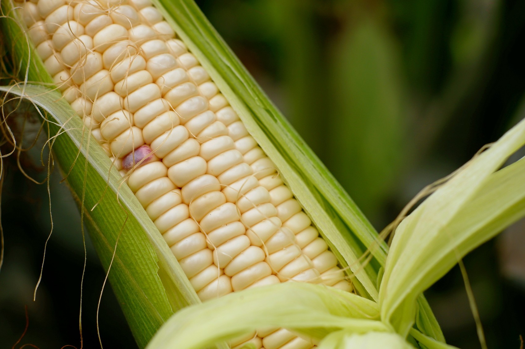 现场着重展示的是2022年即将审定的“ 华鲜玉1801”,剥开其苞叶一看,籽粒呈乳白色,整齐紧密排列,颗粒饱满剔透。