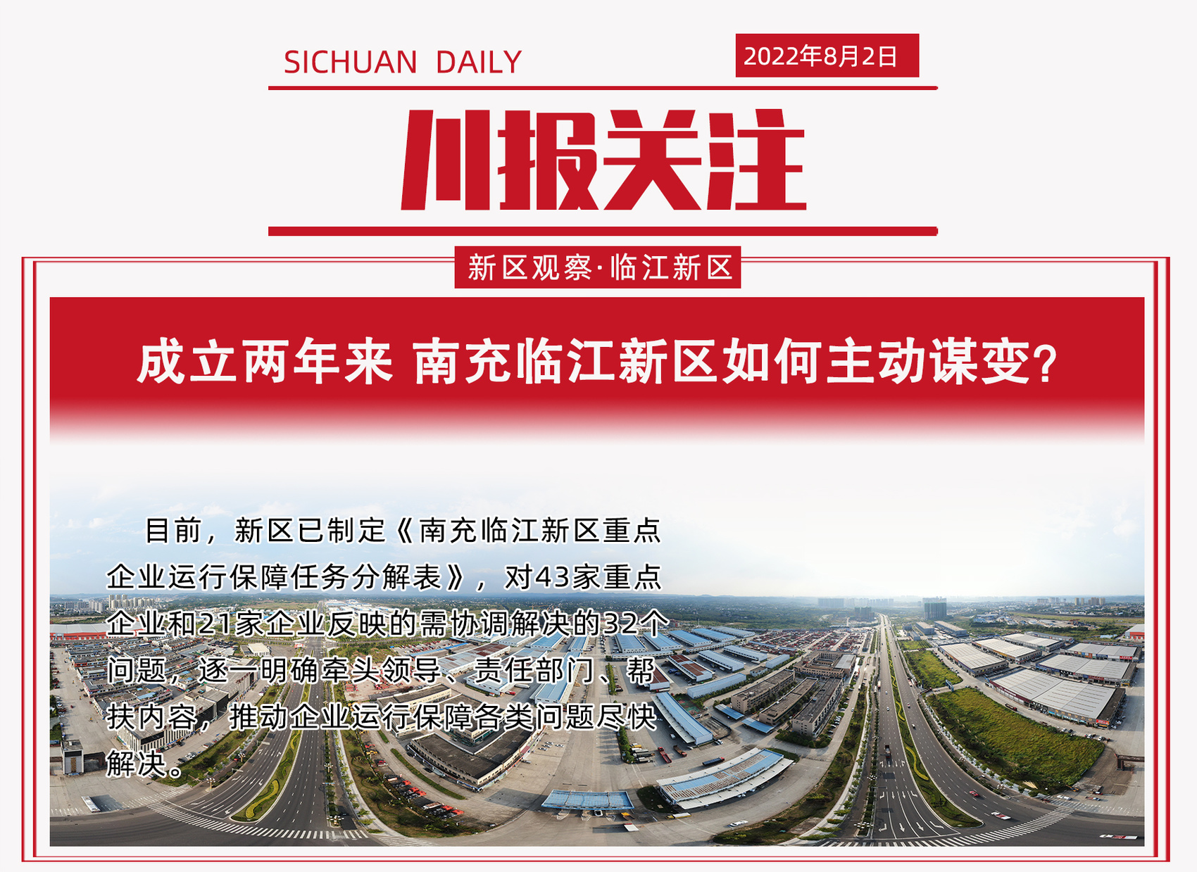 目前,新区已制定《南充临江新区重点企业运行保障任务分解表》,对43家重点企业和21家企业反映的需协调解决的32个问题,逐一明确牵头领导、责任部门、帮扶内容,推动企业运行保障各类问题尽快解决。