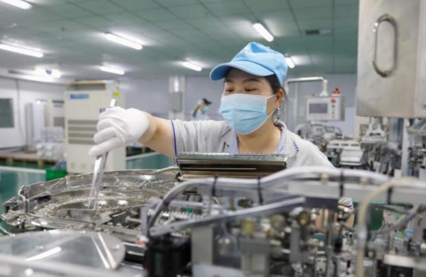 四川凯普松电子产业有限公司生产车间工人正在紧张生产。黎涛 摄