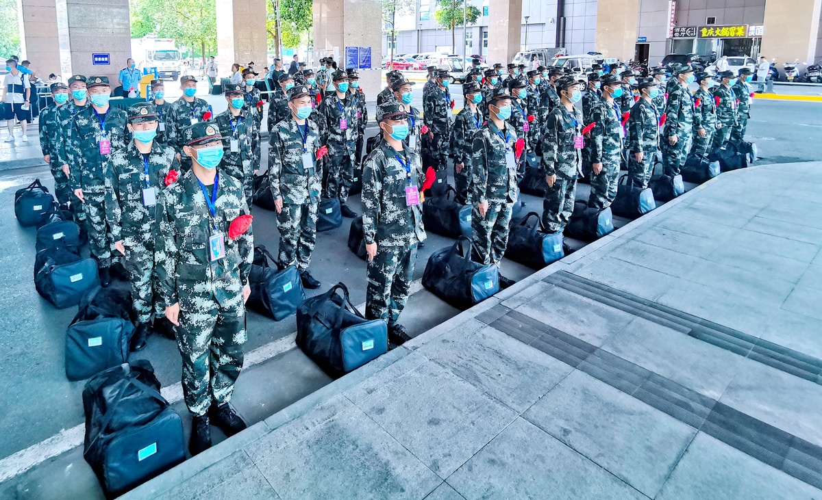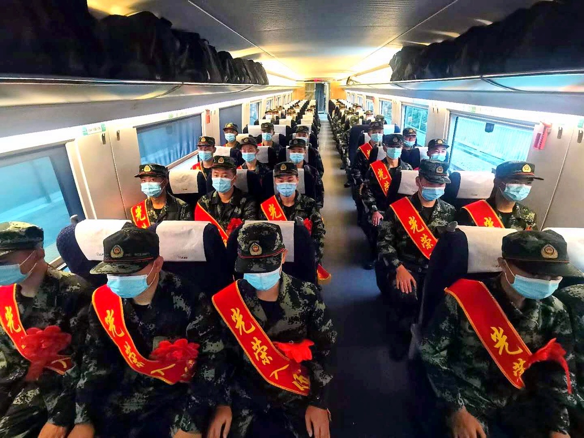 一张张稚嫩的脸庞洋溢着青春的朝气和活力,胸前的红花与身上的橄榄绿相得益彰。“紧张、憧憬也很兴奋,想赶快加入到部队这个大家庭,不断磨砺自己、锤炼本领……” 刚走下列车,21岁的简新力激动地说。