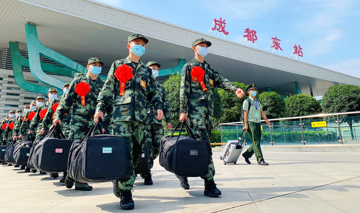 又一批有志青年背起绿色行囊,戴上入伍红花,挥别家乡父母,来到天府之国。9月10日13时许,随着G2201次列车缓缓驶入成都东站,武警四川省总队迎来了今年首批来自重庆、河南等地的100余名新兵。