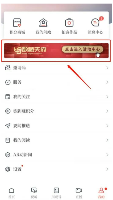 下载川观新闻客户端—点击“我的”—进入活动中心—点击“数藏天府”即可免费申领