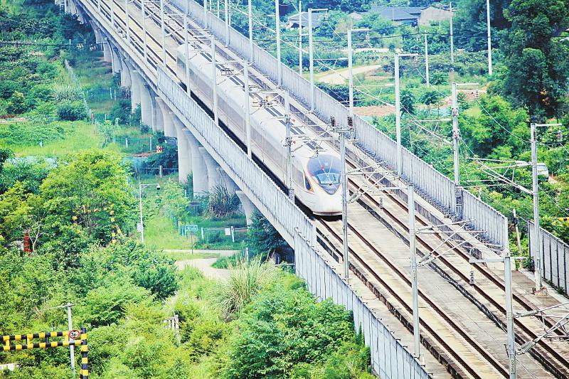 2015年,由蜀道集团投资建设的成渝高铁正式建成通车。成渝高铁是四川第一条高铁,对助力成渝地区双城经济圈建设等具有重大意义。(拍摄于2021年6月)