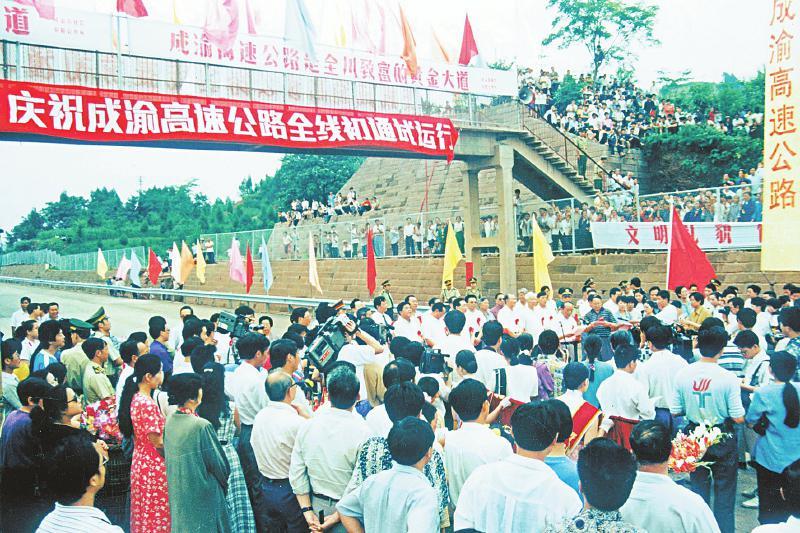 1995年,四川省第一条高速公路成渝高速公路全线初通试运行,实现了四川高速公路零的突破,拉开了蜀道集团投资建设高速公路的序幕。 (拍摄于1995年7月1日)