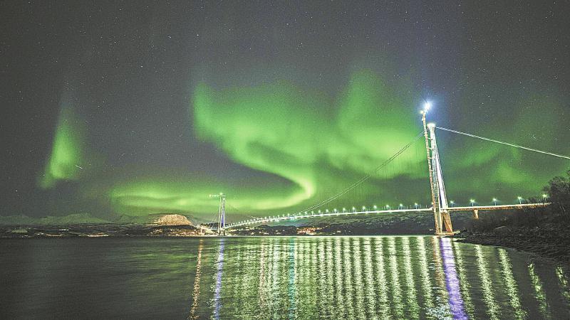 2012年,蜀道集团中标挪威哈罗格兰德大桥,成为首个进入欧洲发达国家承建大跨径桥梁的中国企业。2018年12月该桥建成通车,是挪威第二大跨径桥梁、北极圈里最大跨径悬索桥。(拍摄于2018年)
