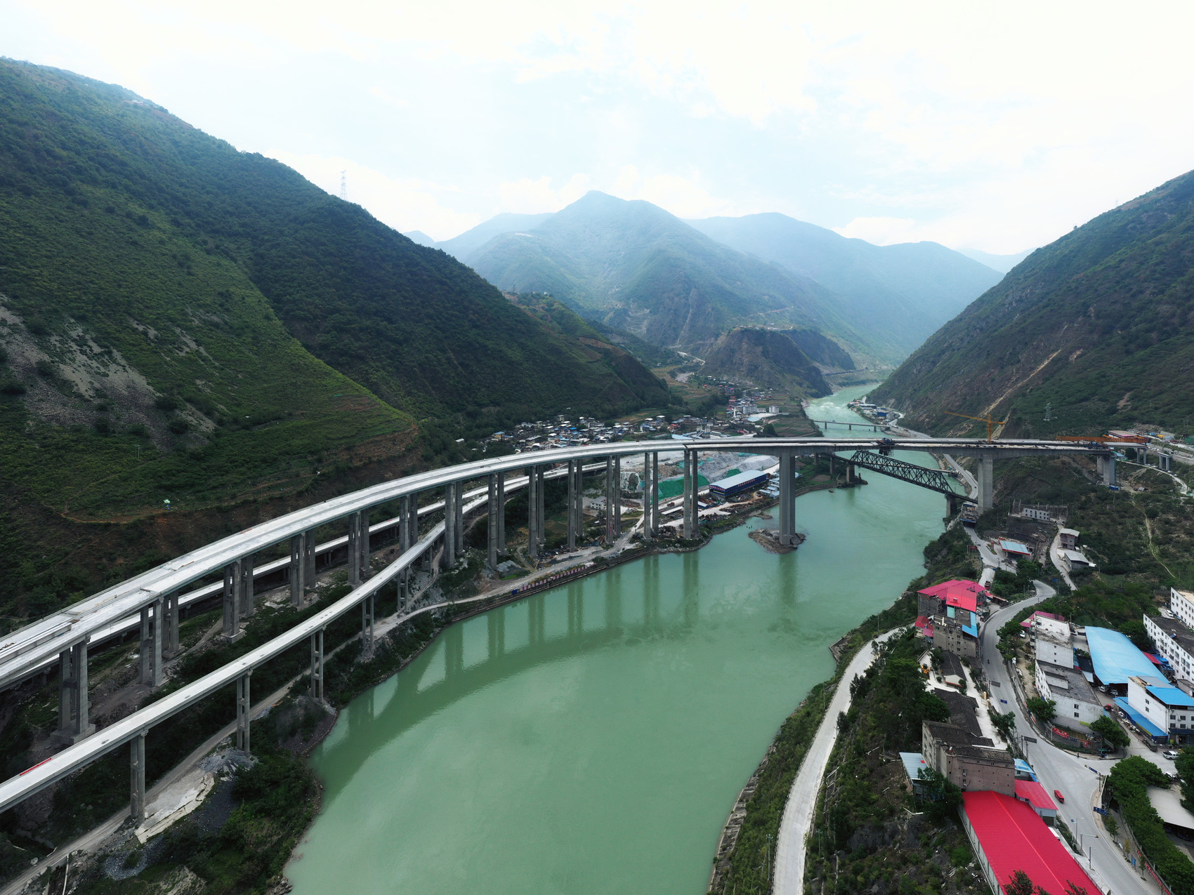 乌斯河特大桥横跨大渡河,连接雅安市汉源县和凉山州甘洛县,主线全长2138米,主桥为连续刚构桥,主墩高度97米,平均墩高75米,是峨汉高速公路控制性工程乌史大桥乡互通的主要组成部分。目前,乌史大桥乡互通已全面进入最后冲刺阶段,预计10月底实现贯通。