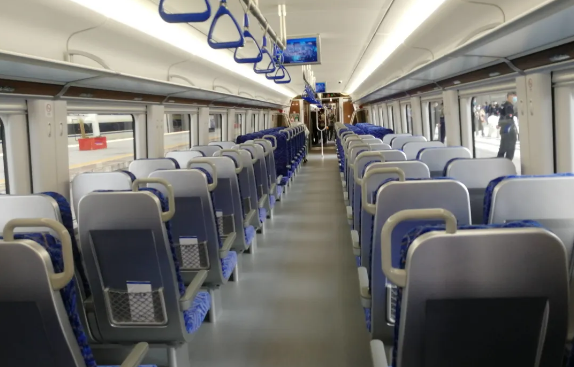 除此之外,在车厢的过道和两头增设了像公交车一样的扶手区域,用于旅客站立乘坐。这样一来,整辆动车可以增加容纳437位站立旅客。